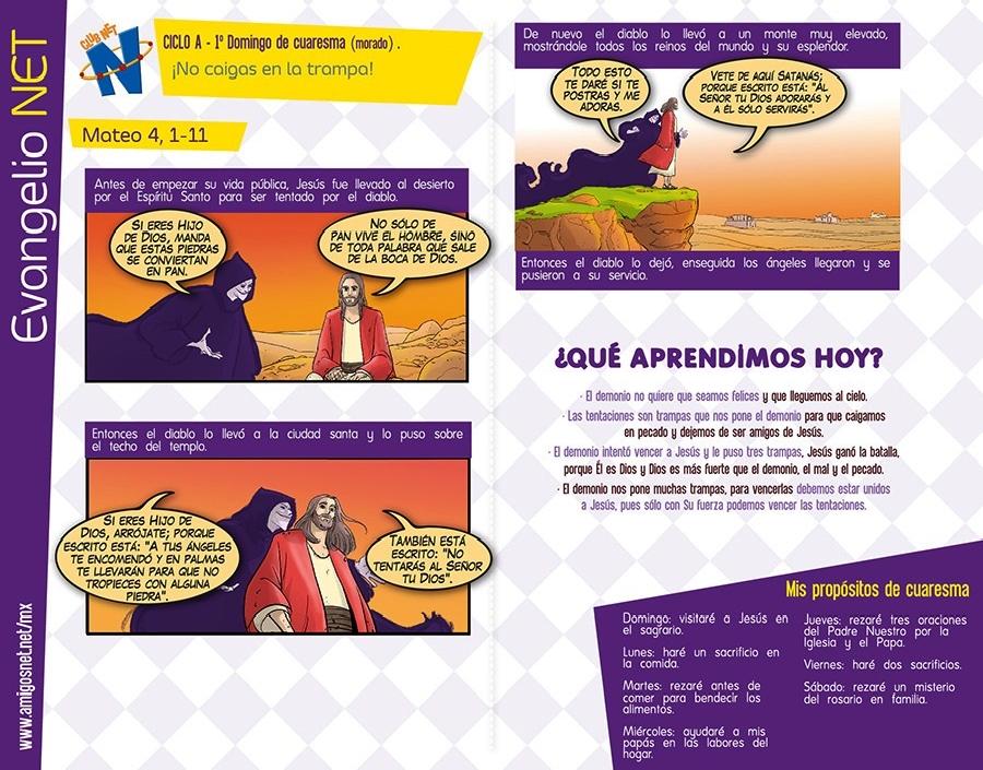 Mateo 4, 1- 11 para niños. Jesús es tentado. 3 de Marzo de 2017 Dios nos habla a todos, sin importar nuestra edad o condición social. Conoce lo que él tiene hoy para decirte. Síguenos en nuestra FAN PAGE de FACEBOOK PARROQUIA NUESTRA SEÑORA DE TORCOROMA BOGOTÁ Like 0 Dislike 0 Otros artículosNovena de Aguinaldos y su origen. Horario13 de Diciembre de 2025Las novenas, o novenario es una costumbre muy antigua que tiene sus raíces en la época colonial. Nota doctrinal sobre los títulos marianos: La Madre del Pueblo Fiel, no Corredentora4 de Noviembre de 2025El documento del Dicasterio para la Doctrina de la Fe aprobado por León XIV aclara los apelativos que deben usarse para...