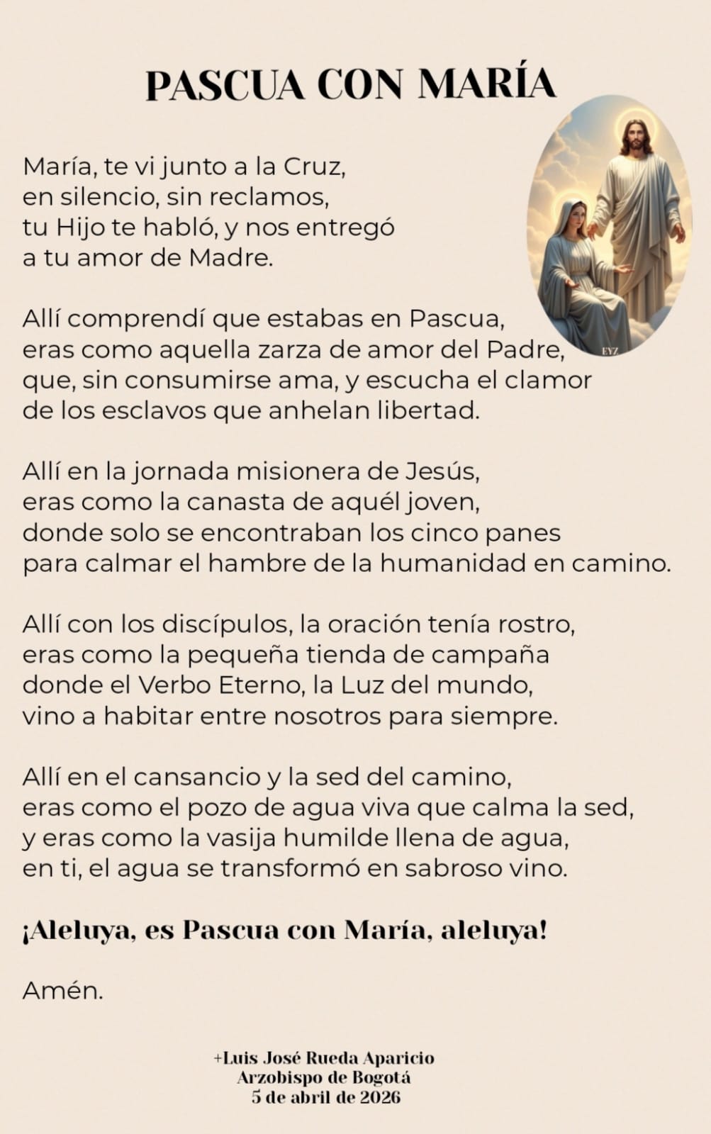 Te invitamos hoy a orar con fe y con esperanza la siguiente oración que nos comparte el señor Cardenal Luis José Rueda Aparicio, Arzobispo de Bogotá.