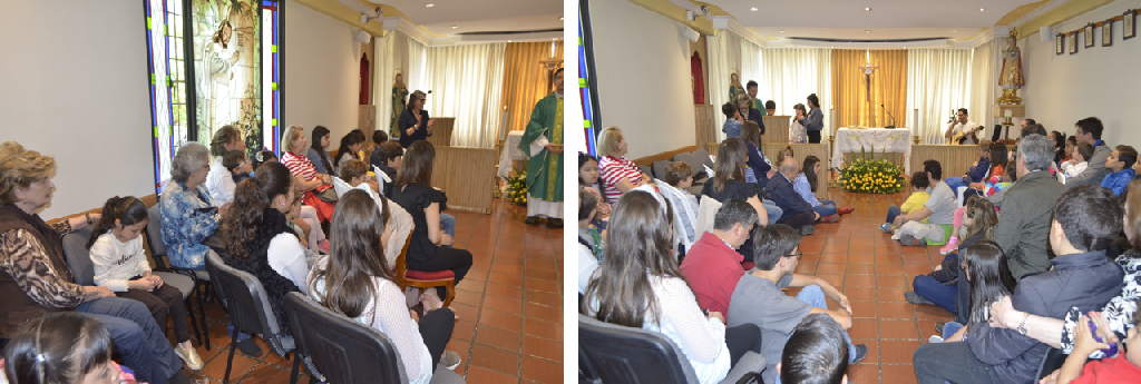 El sacerdote celebrante les hablará de una manera espontánea y fácil de comprender para todos. Los niños, nuestro invitados especiales, participarán en la misa como lectores.
