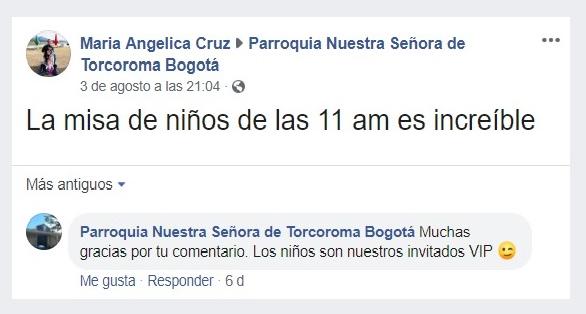 Síguenos en nuestra FAN PAGE de FACEBOOK PARROQUIA NUESTRA SEÑORA DE TORCOROMA BOGOTÁ