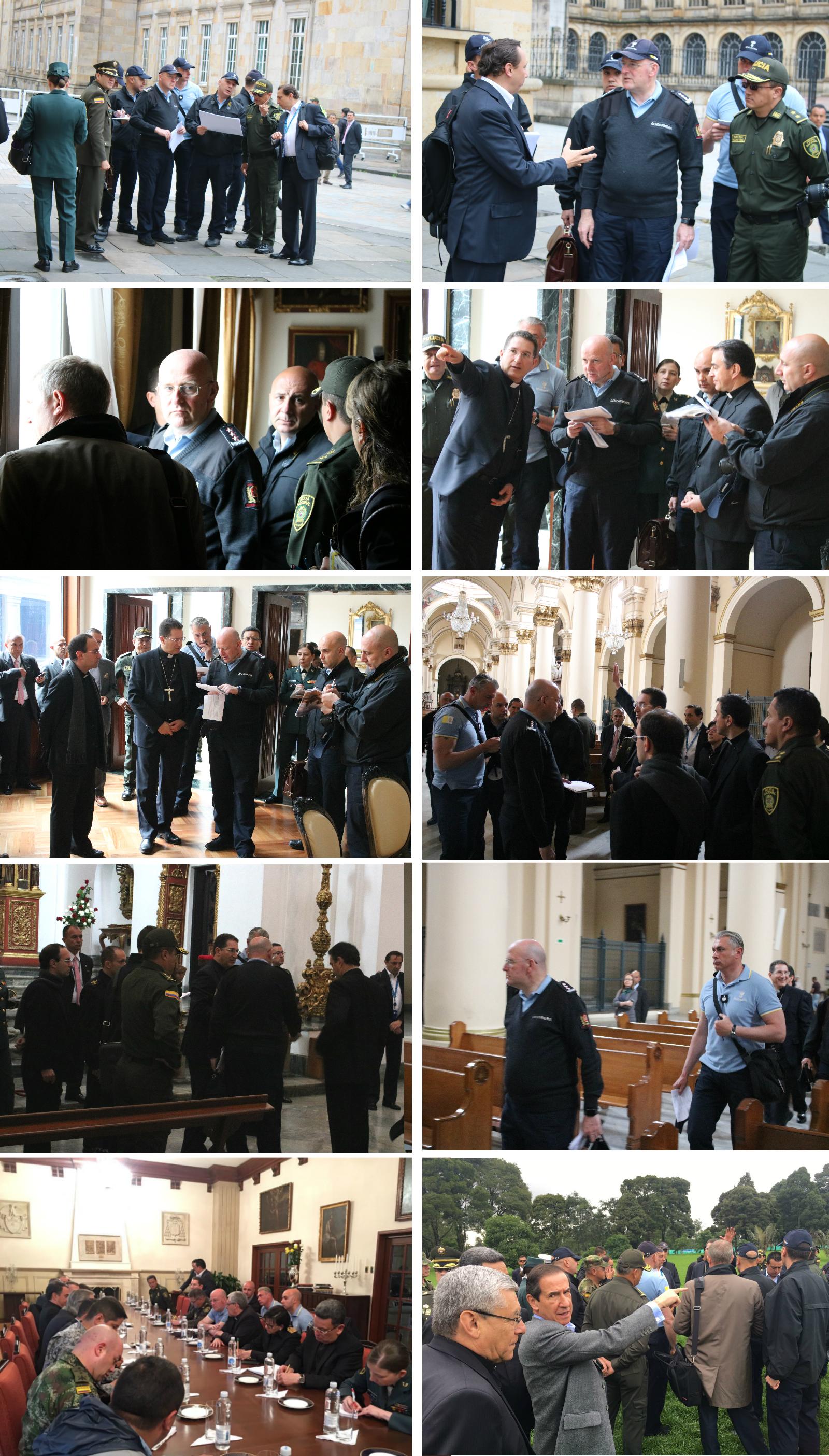 Autoridades de las fuerzas de seguridad del país, como el general Ricardo Restrepo, subdirector de la Policía y el director de protección y servicios especiales general Julio González, el gerente general de toda la logística para la visita del Papa, asignado por la Alcaldía Mayor de Bogotá, doctor Ignacio de Guzmán, entre otros asistentes.