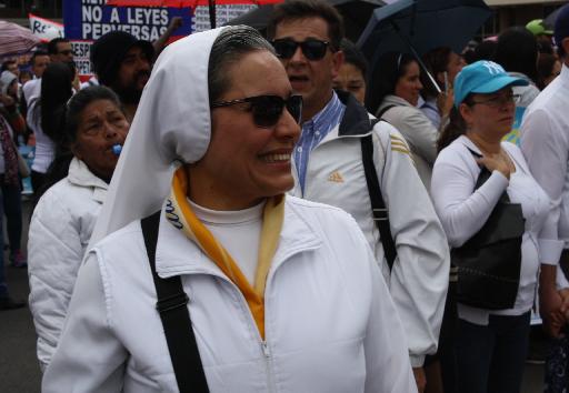 “Por la familia, por los niños y por el respeto a una formación verdadera que respete todos los principios que necesita especialmente este país que carece de valores, y esta es una muestra más que cuando hay unión, buena voluntad se puede trabajar por un mejor país y fortalecer la familia”, aseguró Héctor Tobo, cantante de música católica quien acudió al llamado de la iglesia e hizo parte de la protesta.