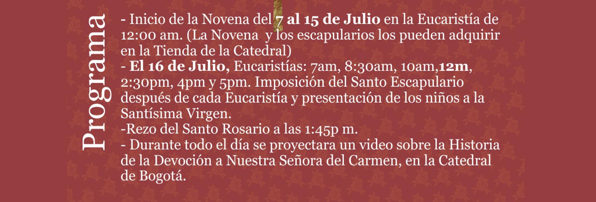 Centro de información Yo quiero Noticias Boletines Eventos Artículos Canonización Mensajes del Señor Cardenal Cartas pastorales Homilías Mensajes La voz del pastor Documentos del Vaticano NoticiasFiesta de la Virgen del Carmen16 de Julio de 2014En Colombia los transportadores la adoptaron como su patrona por la protección e intercesión que se le atribuye a la Virgen del Carmen en situaciones de peligro. Es…Haz click aquí para mayor información Like 0 Dislike 0 Noticias relacionadas #Destacado Proyecto educativo del SEAB #Recomendado